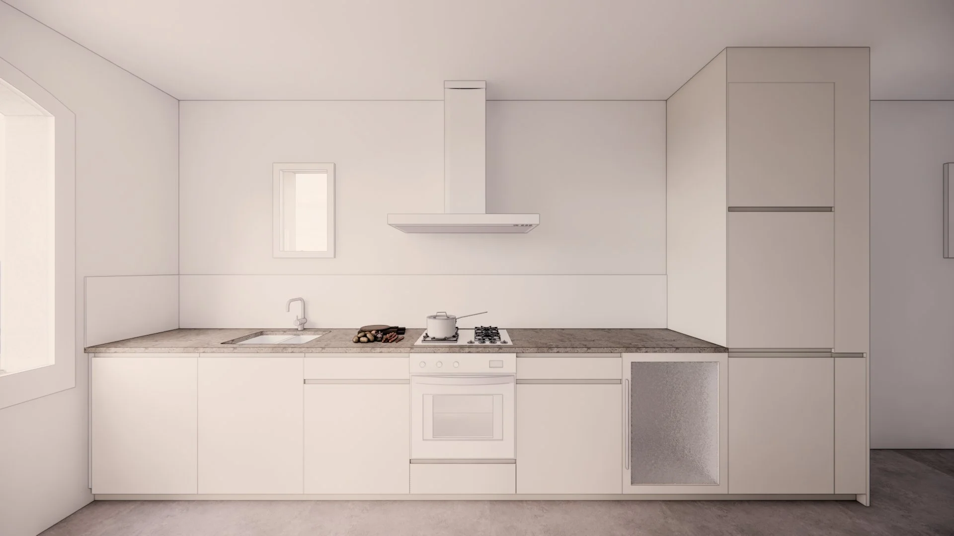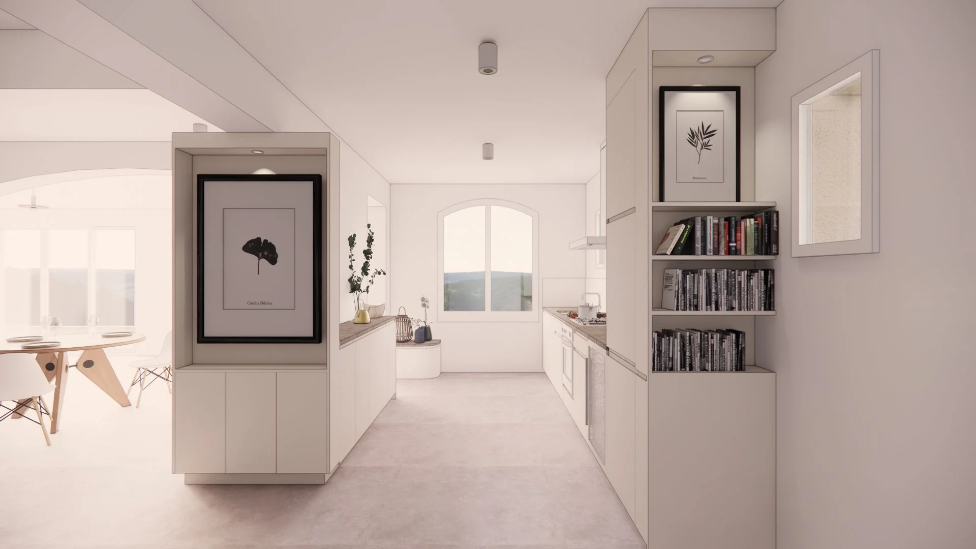 Réaménagement d’une cuisine, d’une surface d’environ 12,30 m2. Dessin du mobilier sur-mesure répondant aux besoins du client et aux diverses contraintes de la pièce (réseaux existants, ouvertures et cloisons existantes, oeuvres à inclure...). Accompagnement auprès du client dans le choix des finitions (mobilier sur-mesure...).